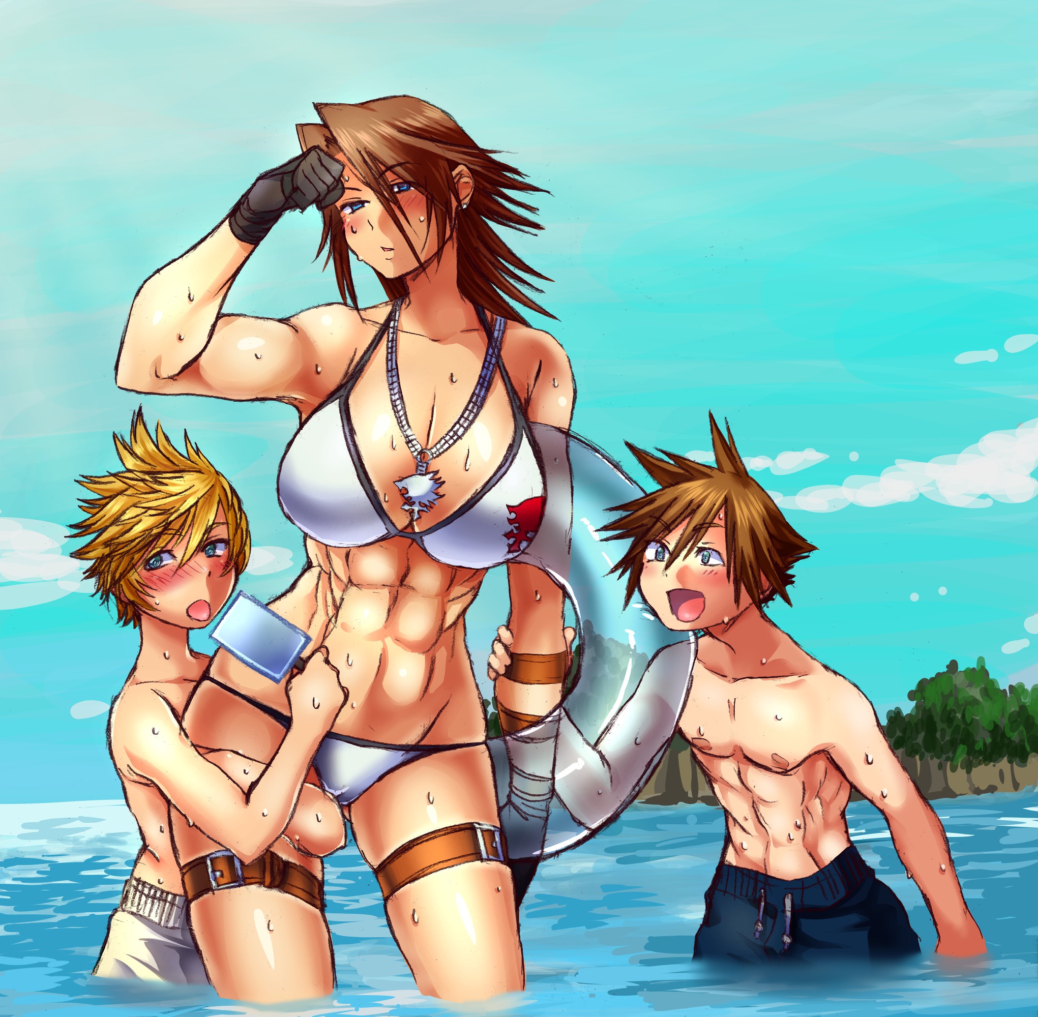 1girls2boysabsage differencebikiniblonde hairblue eyesbreastsbrown hairbucklecleavagefemaleFlag for Deletiongloveshairhumaninnertubejewelrylarge breastsmalemultiple boysmultiple malesmusclesmuscular femalenecklacepopsicleswim trunksswimsuittonedwet