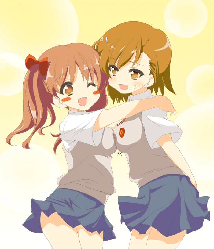 azuma yuki, kirihara mikan, r chronicle, 1girl, black eyes, blonde hair, blush stickers, brown eyes, bug, butterfly, butterfly hair ornament, female focus, furisode, hair ornament, insect, japanese clothes, kimono, long sleeves, meta, new year, one eye closed, open mouth, sandals, short hair, sleeves past wrists, socks, solo, tabi, wink, zouri