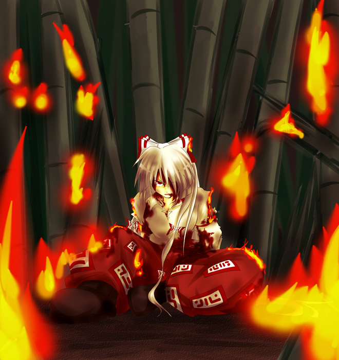 1girlangrybamboobamboo forestbleedingbloodfemale focusfireforesthair ribboninjurynatureribbonsolowhite hair