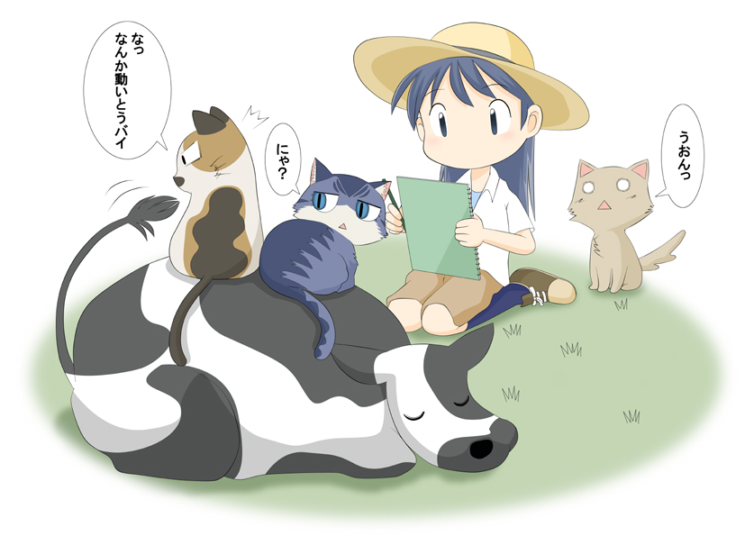 kinoko (kino2435006), chen, yakumo ran, yakumo yukari, touhou, absurdres, chinese commentary, commentary, highres, 3girls, ^ ^, animal ear fluff, animal ear piercing, animal ears, apron, blonde hair, bow, brown hair, cat ears, cat girl, cat tail, chair, closed eyes, coffee maker, counter, day, door, dress, fisheye, fox girl, fox tail, frying pan, hair bow, hat, holding, holding frying pan, indoors, kitsune, kyuubi, long hair, long sleeves, microwave, mob cap, multiple girls, multiple tails, open mouth, plate, purple apron, purple dress, red bow, short hair, short sleeves, sleep mask, smile, stove, stretching, sunlight, table, tail, two tails, white hat, window, window shadow, yawning