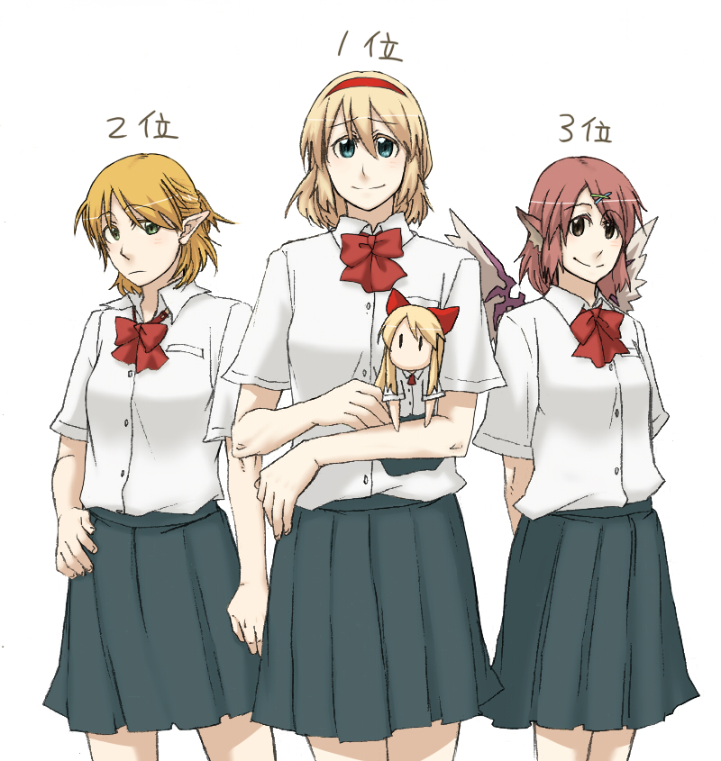 sanshita, sato ayano, satou ayano, suzuki yuma, takahashi eriko, joshi kousei, ass grab, striped neckwear, 3girls, ass, bag, blazer, blonde hair, breasts, brown hair, closed eyes, earrings, female focus, glasses, grabbing another's breast, green hair, groping, hair bobbles, hair ornament, holding, jacket, jewelry, molestation, multiple girls, necktie, open mouth, panties, plaid clothes, plaid skirt, school uniform, skirt, striped necktie, underwear, white panties, yuri