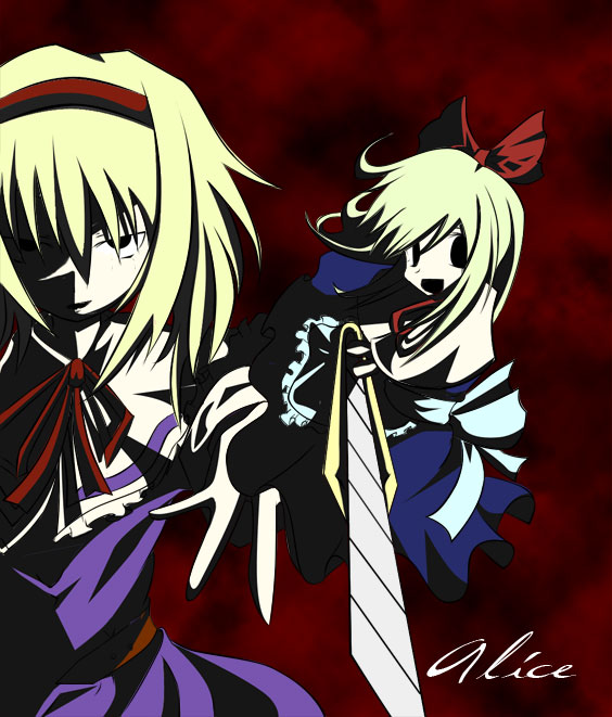 2girlsblonde hairboxcutterdollempty eyesfemale focushairbandmultiple girlsribbonshort hairsoloyandere