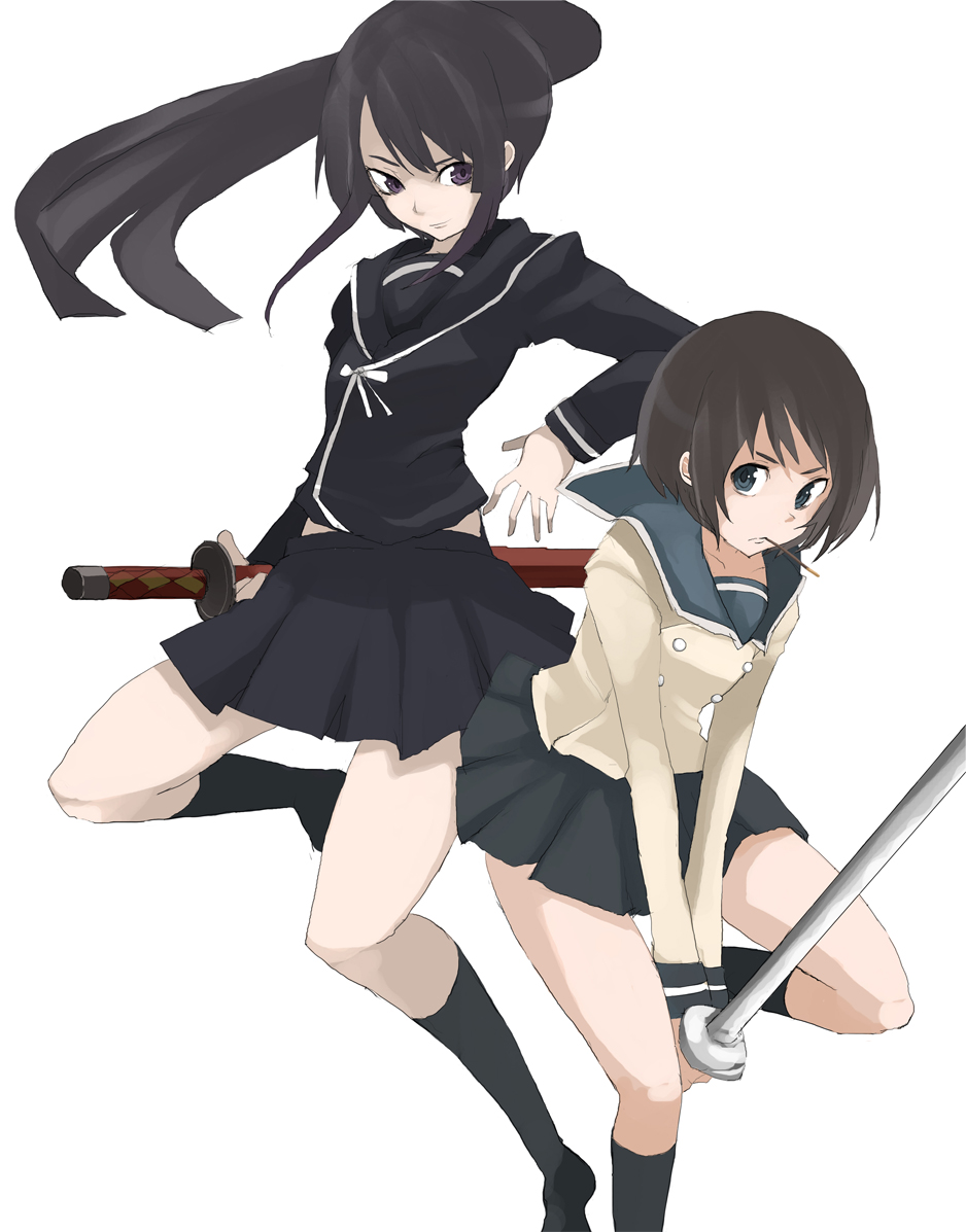yaso shigeru, kotona elegance, zoids, zoids genesis, 00s, 1girl, female focus, green hair, long hair, one eye closed, purple eyes, simple background, solo, thighhighs, tongue, white background, wink