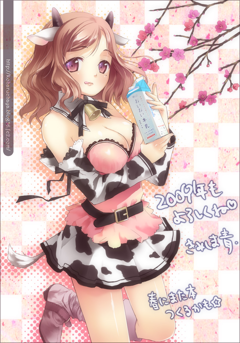 00s1girl2009animal earsanimal printbare shouldersbellbeltbootsbreastsbrown haircherry blossomscleavagecow earscow girlcow printdetached sleeveselbow glovesfemale focusfingernailsgloveshornsknee bootslarge breastslicking lipslong fingernailsmilkmolemole under eyenew yearpink eyesribbonshiny skinshort hairskindentationskirtsolotonguetongue out