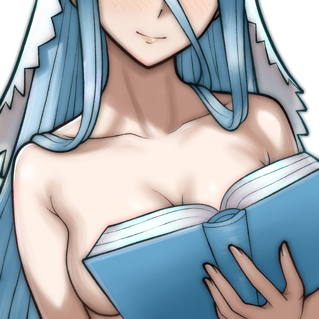 ebora, lilith (fate), fate/grand order, fate (series), absurdres, highres, 1girl, bare shoulders, black hands, blue one-piece swimsuit, blush, body markings, breasts, choker, cleavage, colored extremities, crossed bangs, demon girl, demon horns, demon wings, earrings, eating, food, green eyes, grey hair, hair between eyes, horns, jewelry, large breasts, long hair, looking at viewer, one-piece swimsuit, pointy ears, popsicle, solo, swimsuit, thighs, twintails, very long hair, wet, wings
