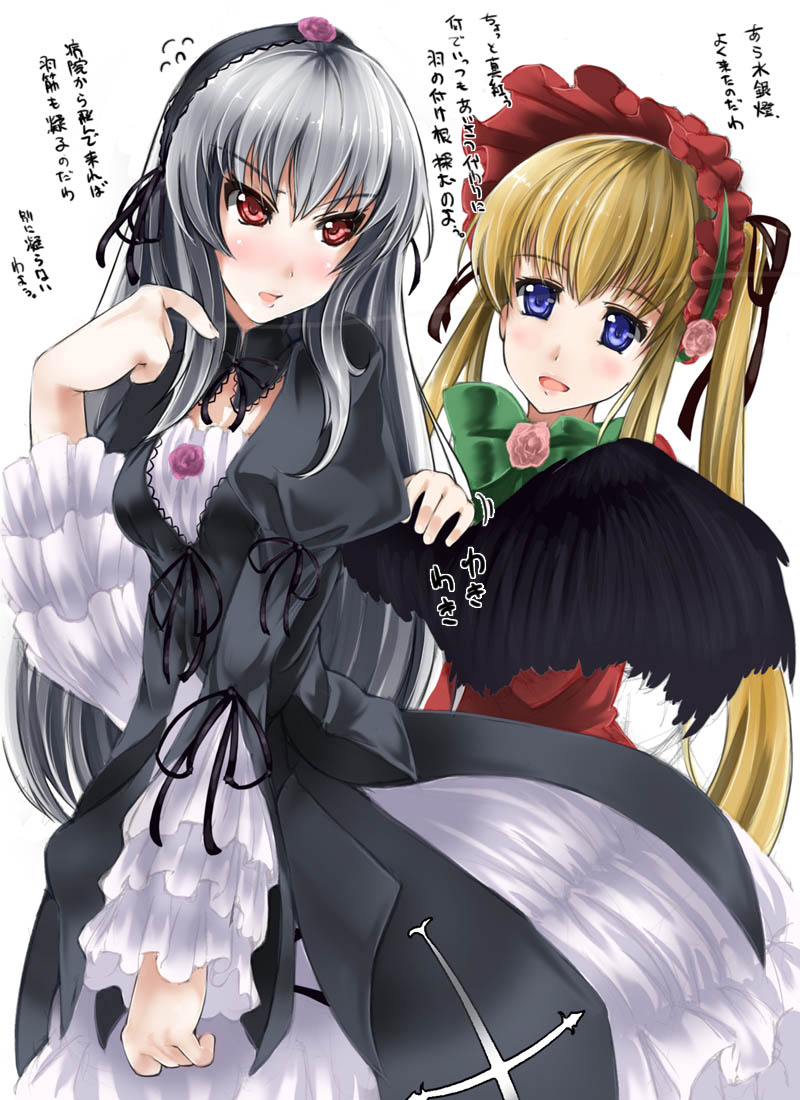 00s2girlsblonde hairblue eyesdresshairbandlong hairmultiple girlsred eyessimple backgroundtext focuswings
