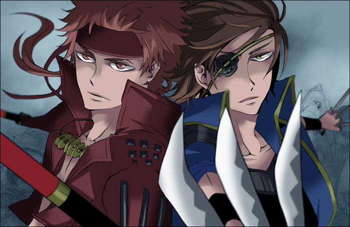 00s2boysbrown haireyepatchgradient backgroundheadbandmale focusmultiple boysred hairupper bodyweapon