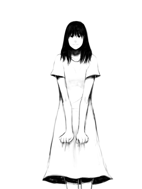 teko1193, meursault (project moon), limbus company, project moon, absurdres, highres, black eyes, black hair, cape, chain, chained wrists, e.g.o (project moon), grey cape, grey pants, grey shirt, logo, metal belt, pants, shirt, sun, torn cape, torn clothes, white background