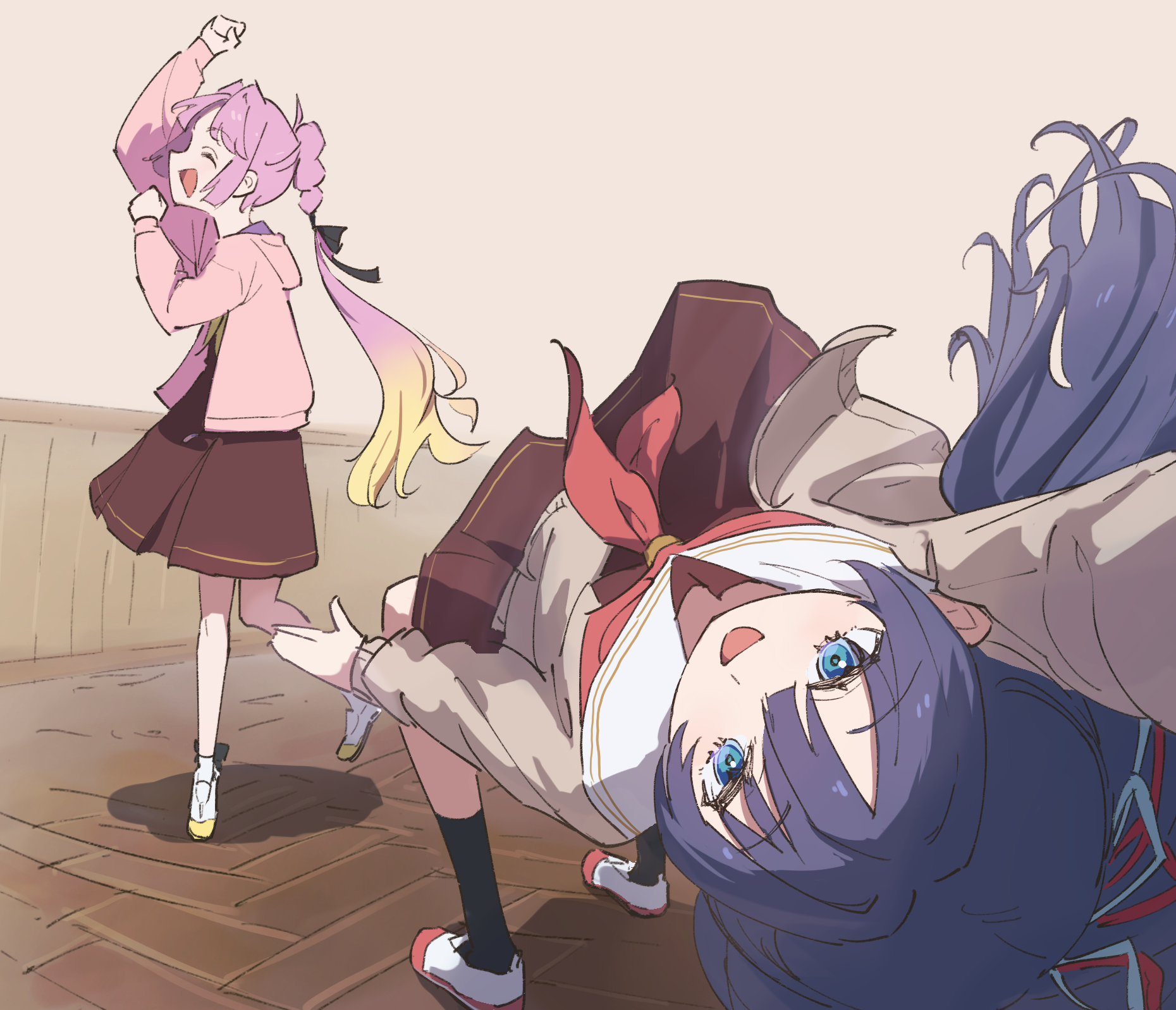 :d1boy2girlsarms upbending backwardblack bowblack socksblonde hairblue eyesblue hairbowbow legwearbrown cardiganbrown dresscardiganclenched handsclosed eyesdancingdressgradient hairhasu no sora school uniformhoodhooded jacketjacketlong sleevesmulticolored hairmultiple girlsneckerchiefopen cardiganopen clothesopen jacketopen mouthpink hairpink jacketprofilered neckerchiefred shoessailor collarsailor dressschool uniformshoessmilesocksuwabakivery! very! coconatsuvirtual youtuberwhite sailor collarwhite sockswinter uniformyellow neckerchiefyellow shoes