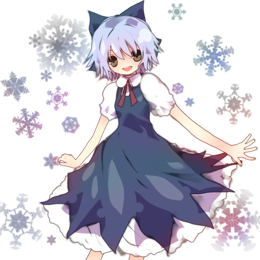 :d1girlblue dressblue eyesblue haircontrappostodressfemale focuslooking at viewermatching hair/eyesopen mouthpuffy short sleevespuffy sleevesshort hairshort sleevessimple backgroundsmilesnowflakessolostandingwhite background