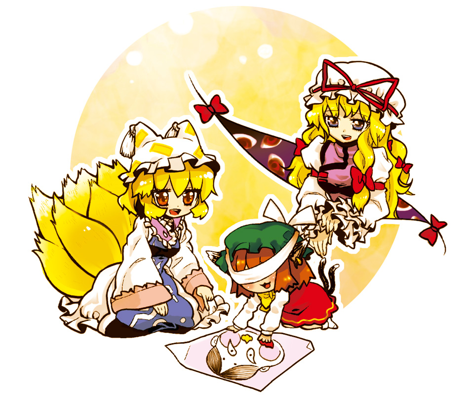 date (senpen), kou (wagaya), kou (wagaya no oinari-sama), tenko kuugen, wagaya no oinari-sama, 00s, 2girls, animal ears, fox ears, hakama, hakama skirt, japanese clothes, miko, multiple girls, red hakama, senpen, skirt