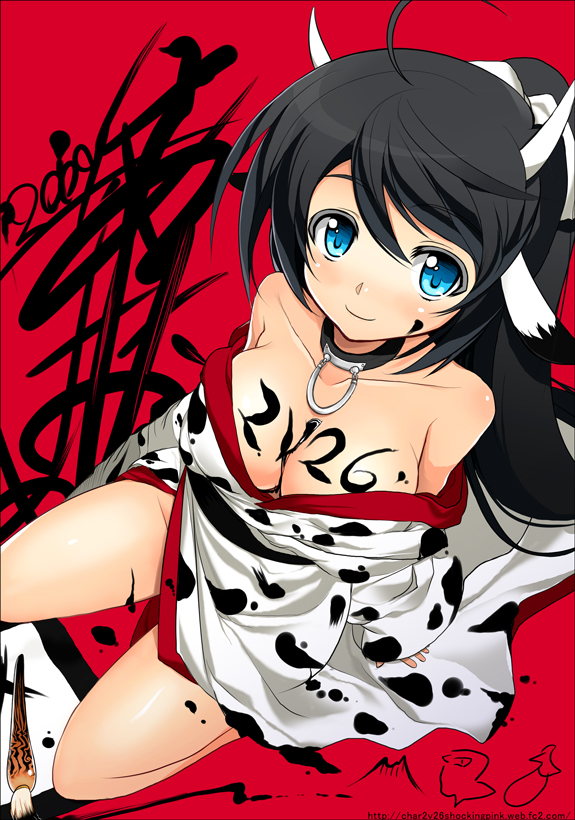 eroiroe, original, commentary request, highres, 1girl, blush, breasts, clothes lift, crop top, curled horns, demon girl, demon horns, demon tail, fantasy, groin, horns, long hair, looking at viewer, medium breasts, navel, nipples, parted lips, purple hair, red eyes, slit pupils, solo, spread legs, tail, thigh strap, wavy hair