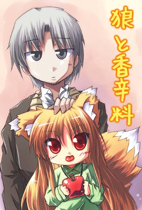 toujou akira, holo, spice and wolf, lowres, 00s, 1girl, animal ears, female focus, monochrome, sepia, solo, wolf ears