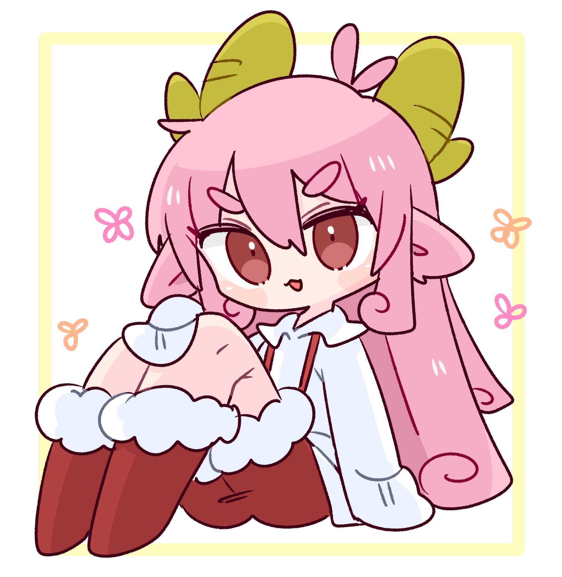 :31girlahogeanimal ear fluffanimal earsantenna hairbootsborderborrowed characterchibichibi onlycollared shirtcurly hairfull bodyfur trimfur-trimmed bootsfur-trimmed shortshair between eyeshand on own kneehand uphornsknees uplight blushlong hairlong sleeveslooking at viewerno noseparted lipspink hairred bootsred eyesred shortssheep earssheep girlsheep hornsshirtshortssidelockssimple backgroundsittingsleeves past fingerssleeves past wristssolosuima (fuyumiso)v-shaped eyebrowswhite backgroundwhite shirtyellow borderyellow horns