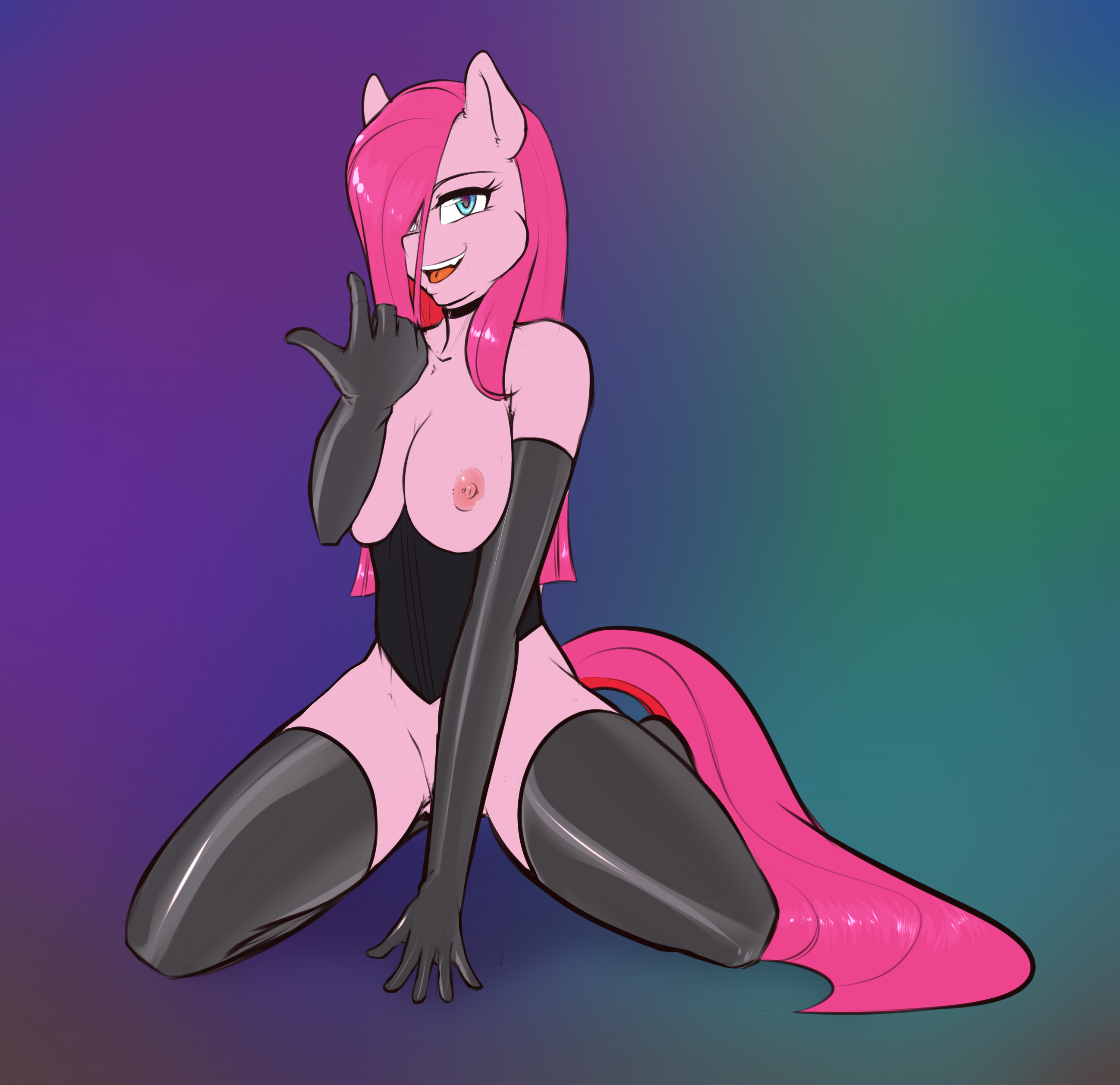 animal earsanthrobare shouldersblack glovesblack legwearblue eyesbreastschokercome hitherconvenient censoringcorsetcoveringcovering crotchearth ponyelbow glovesequineeyelashesfemaleFlag for Deletionfurrygloveshair over one eyehorse earsindex finger raisedkneelinglong hairlooking at viewernipplesnudeopen mouthpink furpink hairsolotailthighhighstopless
