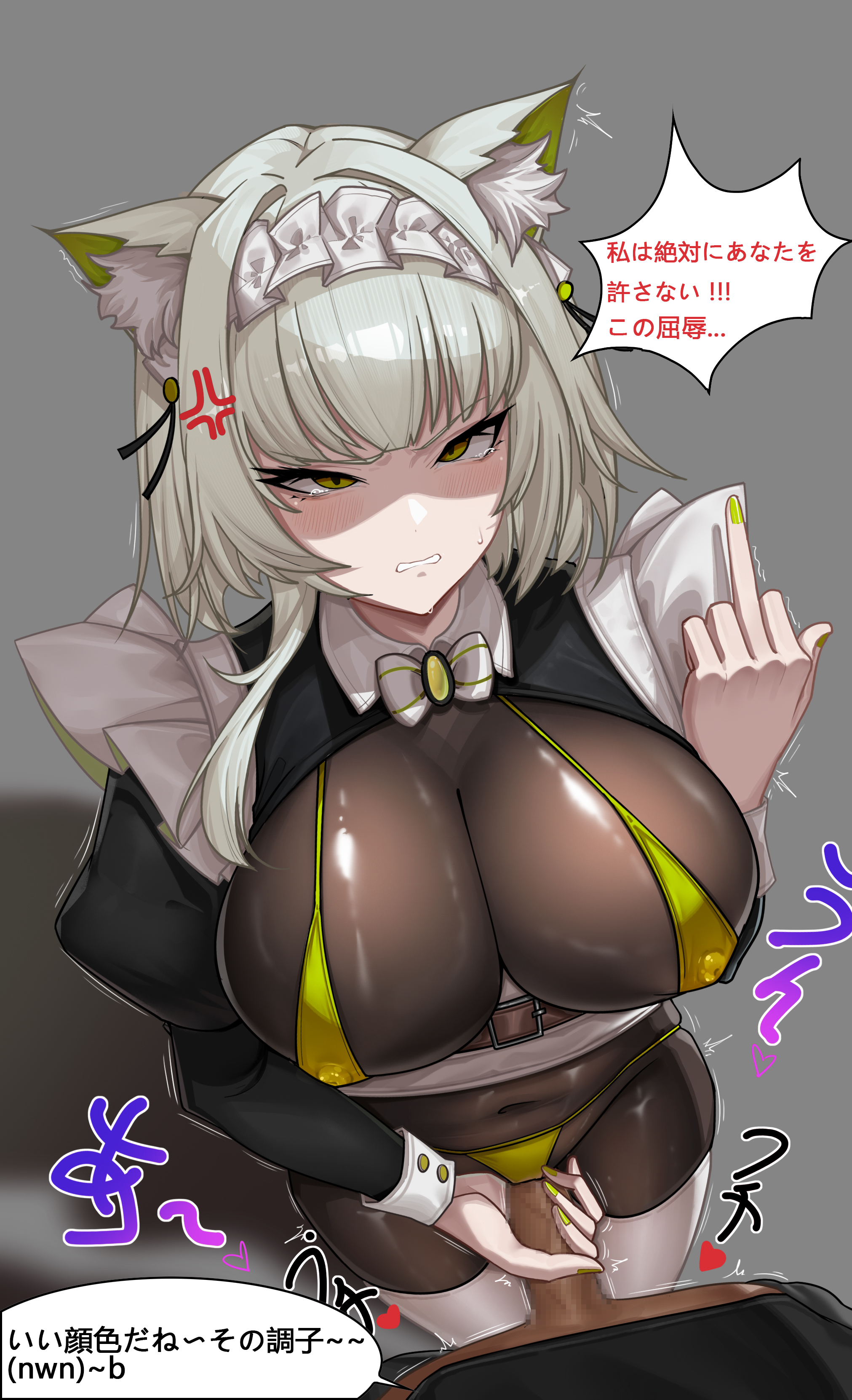 1boy1girlanger veinanimal ear fluffanimal earsbikiniblushbodysuitbreastscensoredclenched teethcovered erect nipplescovered navelerectiongreen bikinigreen eyesgreen hairgreen nailshand uphandjobheterolarge breastslong hairmaid headdressmicro bikinimiddle fingermosaic censoringpenispovshaded faceswimsuittearsteeththighhighswhite thighhighs