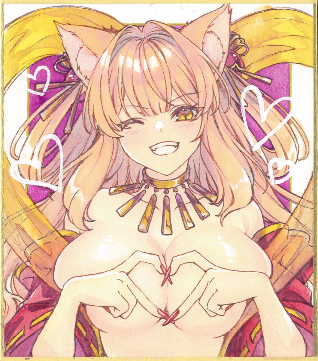 dede (qwea 00000), tidus, yuna (ff10), final fantasy, final fantasy x, 1boy, 1girl, blue eyes, cheek squash, detached sleeves, gloves, green eyes, greyscale, heterochromia, jewelry, leaning forward, monochrome, mouth pull, necklace, one eye closed, short hair, smile, spot color, upper body, wide sleeves