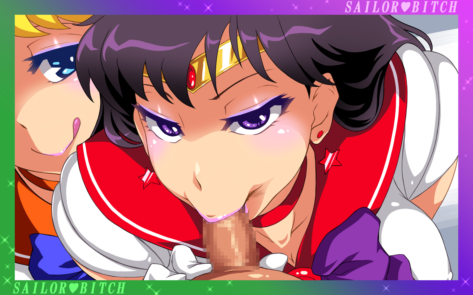 oogure ito, himejima himiko, kutani masahiko, himiko-den, highres, official art, scan, 1990s (style), 1boy, 1girl, :d, abs, armor, blue eyes, blush, bow, breasts, cape, choker, cleavage, covered erect nipples, fingerless gloves, gloves, hair over one eye, large breasts, long hair, muscular, nail polish, no bra, open mouth, pink nails, plaid clothes, plaid skirt, pleated skirt, purple eyes, purple hair, red hair, retro artstyle, school uniform, serafuku, short hair, skin tight, skirt, smile, standing, thighs, weapon