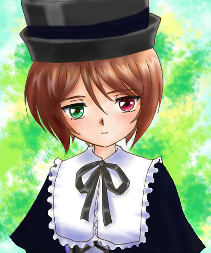 00s1girlboku in blackbrown hairfemale focushatheterochromialooking at viewershort hairsolotop hat