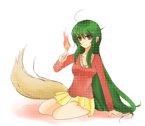 akihara ryou, cecile leica engel berglund, iris mysteria!, gold armlet, 1girl, arm cutout, bare shoulders, breasts, clothing cutout, detached sleeves, double bun, dress, elf, green eyes, green hair, hair bun, hair ornament, hair ribbon, hair stick, holding, holding staff, medium breasts, open mouth, pink ribbon, pink sash, pointy ears, ribbon, sash, sleeveless, sleeveless dress, solo, staff, white dress, white sleeves