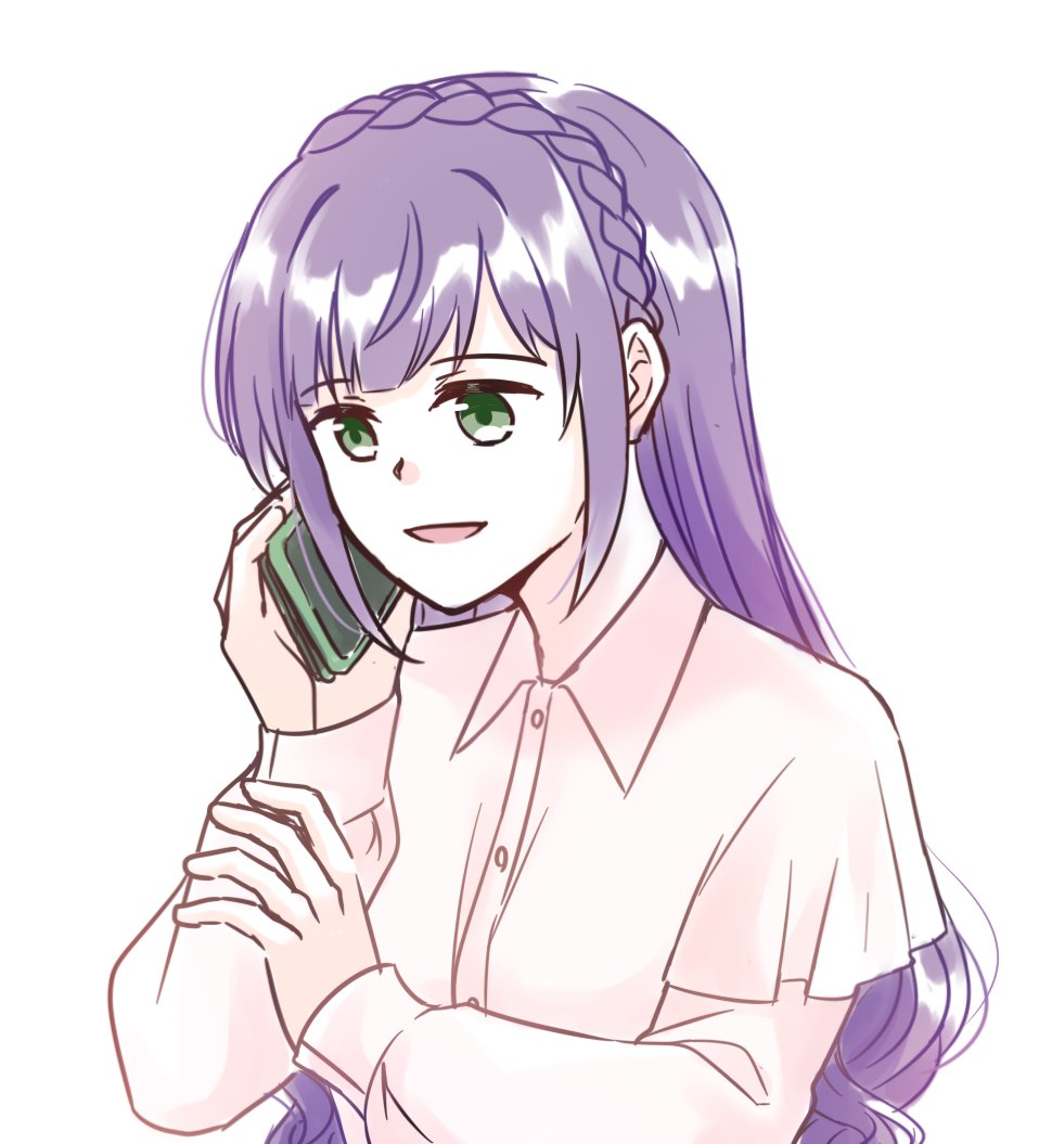 kuzumi taiyou, bamboo memory (ambition of the black iron) (umamusume), bamboo memory (umamusume), umamusume, umamusume: cinderella gray, absurdres, commentary request, highres, official art, 1girl, animal ears, armband, black jacket, blue ribbon, brown hair, collared shirt, debris, green armband, grey shirt, hachimaki, hair between eyes, hairband, headband, horse ears, horse girl, jacket, looking at viewer, neck ribbon, open mouth, purple eyes, ribbon, shirt, short hair, shouting, solo, upper body, white background, white hair, white jacket