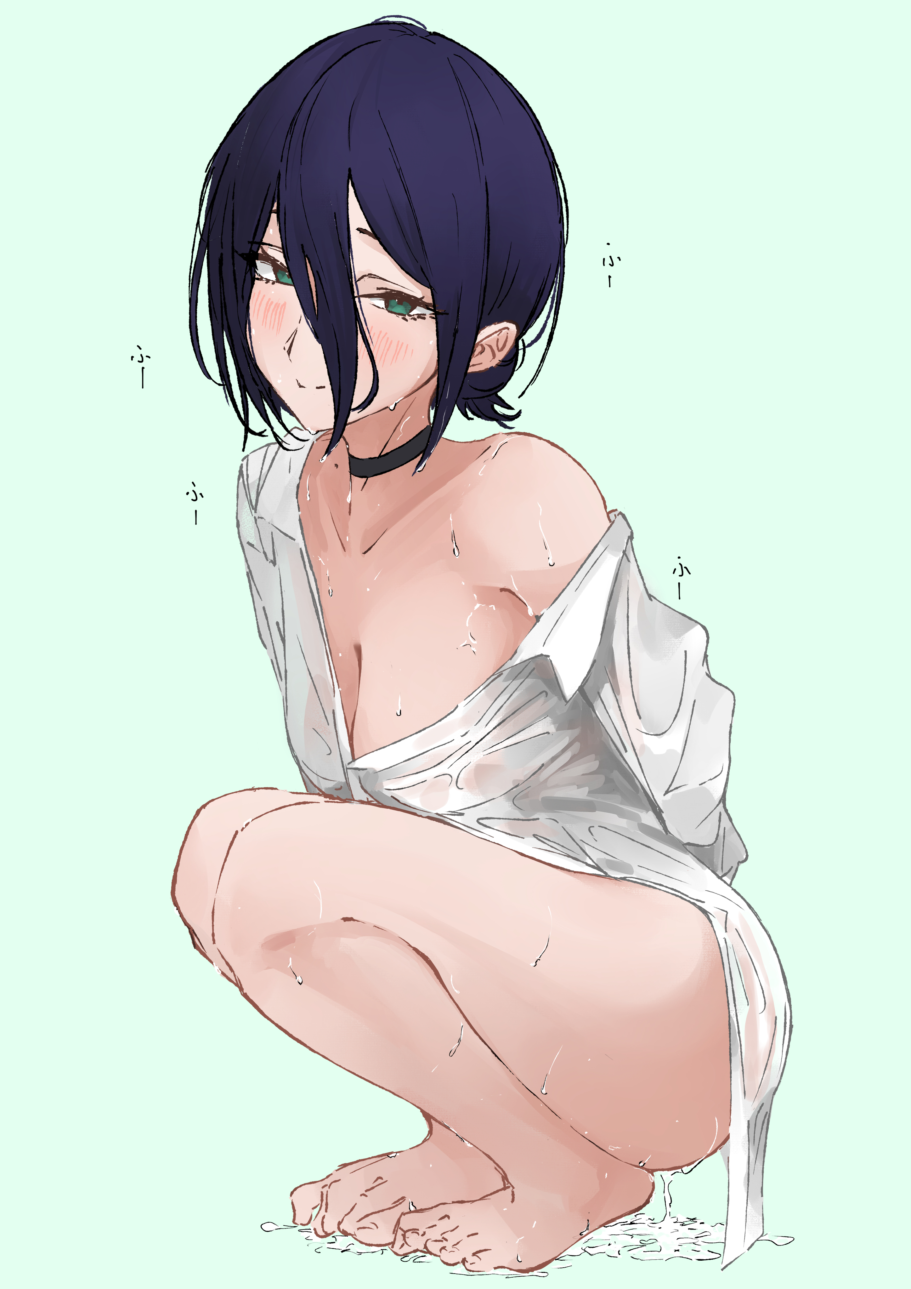 huyase, slavya-chan, 2ch.ru, ru-chans, 1girl, ass, blonde hair, female focus, from behind, long hair, mascot, monochrome, simple background, solo, spot color, standing, white background