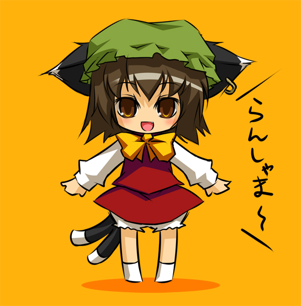 1girlanimal earsbloomersbowbrown eyesbrown haircat earscat girlcat tailchibiearringsfangfemale focusfull bodyhatjewelrymultiple tailsribbonshort hairskirtsolotailunderwearwhite bloomers