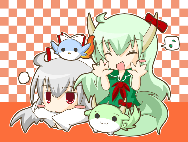 ex-keinefujiwara no mokoufujiwara no mokou (phoenix)kamishirasawa keinekamishirasawa keine (hakutaku)sukusuku hakutaku