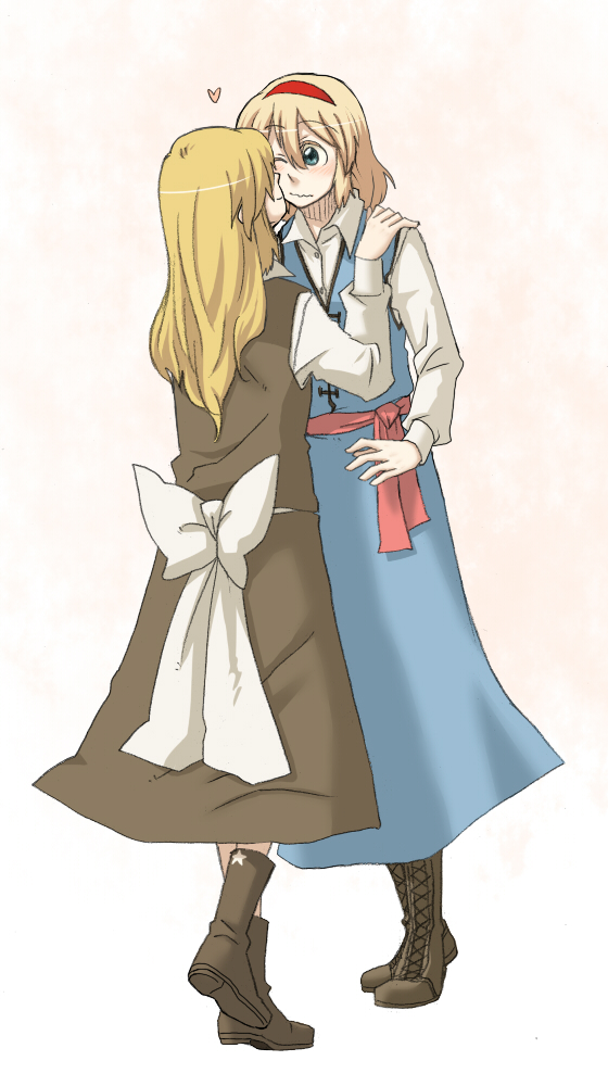 matsushita makako, rakko (makarakko), clarissa satsuki maezono, kamijou asahi, maezono clarissa satsuki, honeycoming royalsweet, highres, 2girls, blonde hair, blue eyes, bouquet, bow, braid, brown hair, flower, hair ribbon, long hair, multiple girls, orange hair, petals, pink eyes, plaid clothes, plaid skirt, red eyes, ribbon, school uniform, serafuku, side braid, skirt, smile, wind