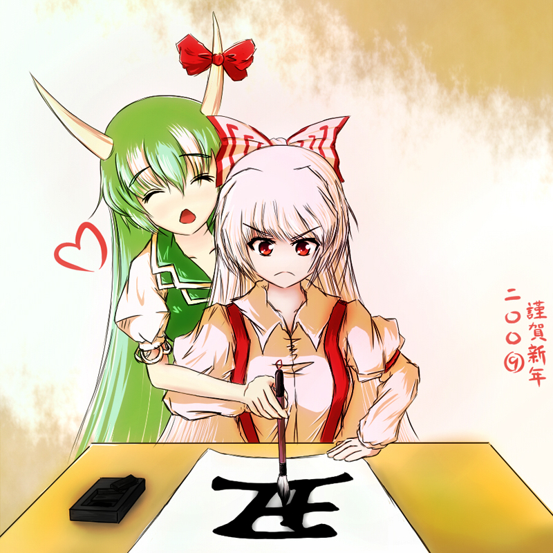 00s20092girlscalligraphycalligraphy brushfemale focusheartmultiple girlsnew yearpaintbrushsitting