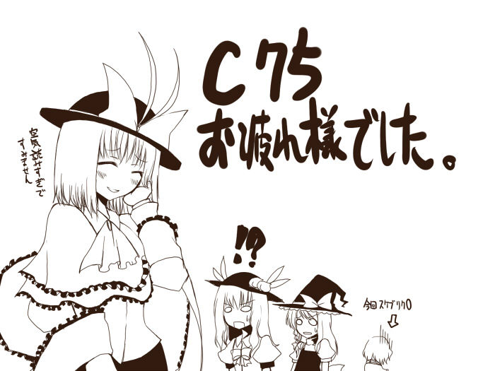 3girlsbrown themecapeletfemale focusfoodfrillsfruithatleafmonochromemultiple girlspeachshawlwitchwitch hat