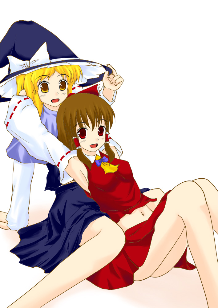 yuu shin, yuuma (tenkyuugi), yakumo ran, yakumo yukari, touhou, bad id, bad pixiv id, highres, 2girls, animal ears, blonde hair, female focus, fox ears, fox tail, gap (touhou), hat, long hair, multiple girls, ribbon, short hair, tail, umbrella
