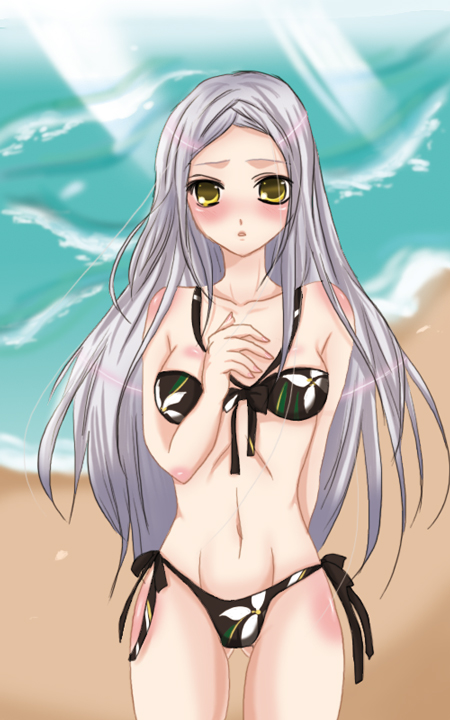 ass, blush, breasts, dark skin, long hair, one-piece swimsuit, school swimsuit, short hair, swimsuit