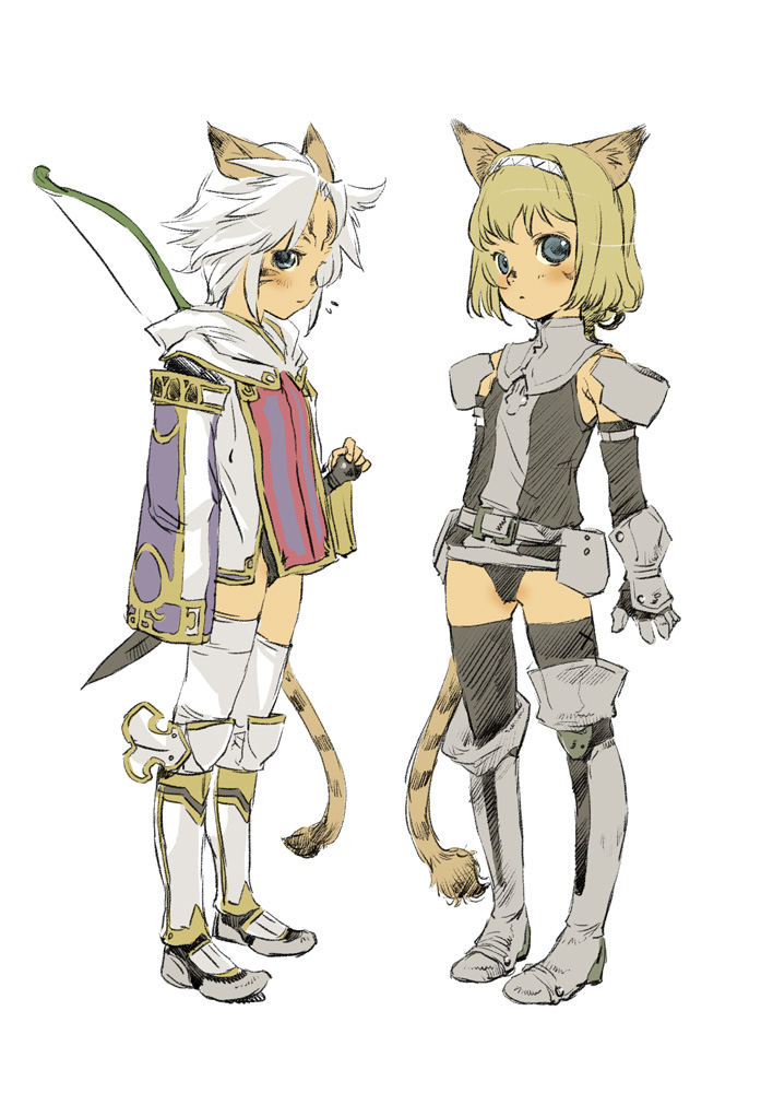 00s2girlsanimal earsblonde hairblue eyesblushcat earscat girlcat tailmultiple girlsshort hairtailthighhighswhite hair