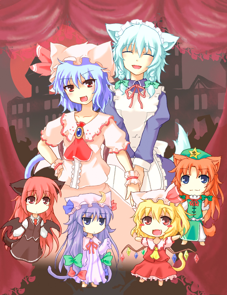 6+girlsanimal earsbat wingsblonde hairblue eyesblue haircat earscat girlcat tailchibieveryonefemale focushairbandhatkemonomimi modelong hairmaidmob capmultiple girlspurple hairred eyesred hairribbonshort hairtailwings
