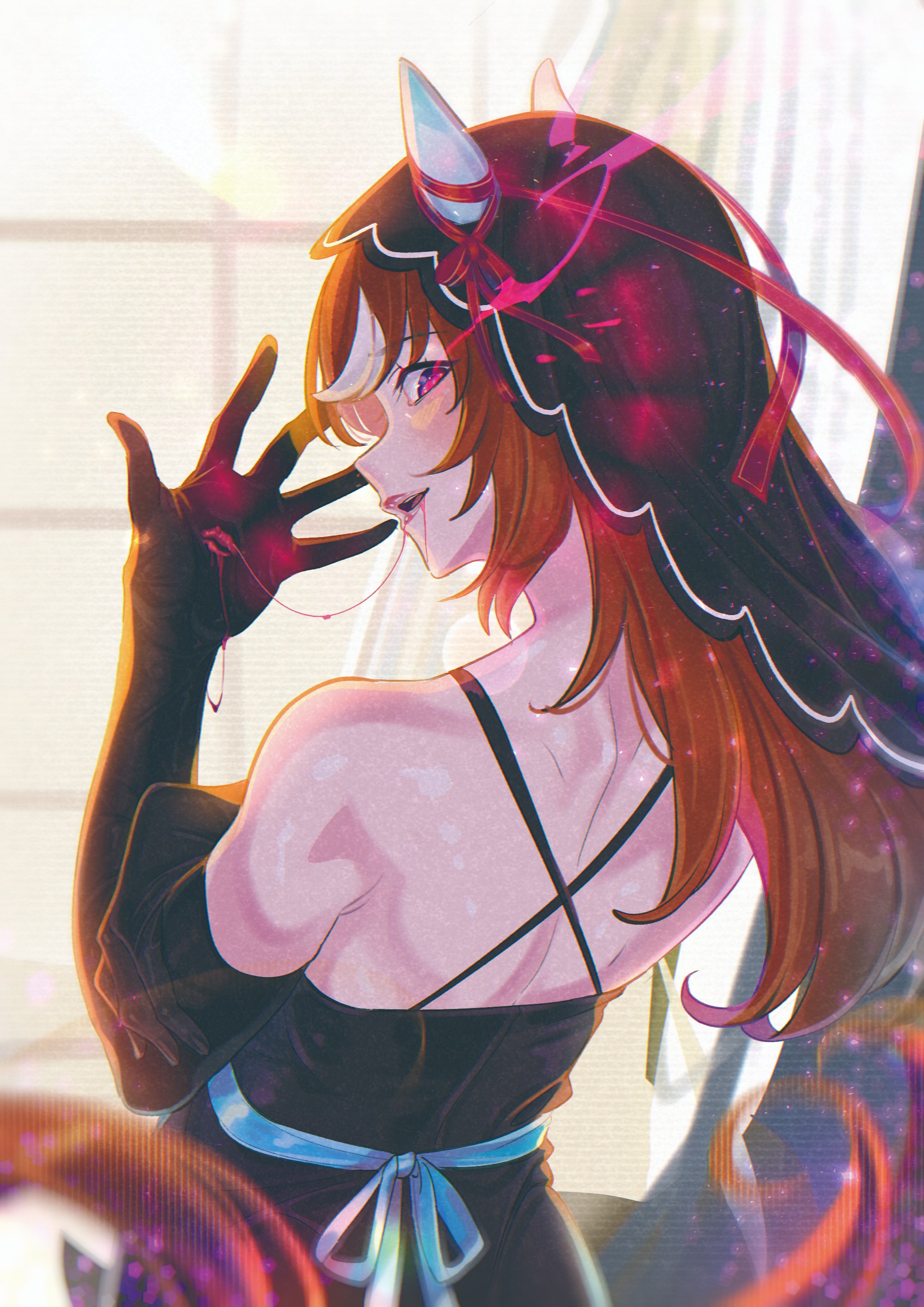 jing (0r1 4), usami rito, usami rito (1st costume), nijisanji, hashtag-only commentary, highres, 1boy, :d, aqua hair, blurry, blurry background, bracelet, crossed bangs, drawstring, earclip, earrings, gradient hair, grey jacket, hair between eyes, hair ornament, hand up, hood, hood down, hooded jacket, jacket, jewelry, lens flare, light particles, lightning bolt, lightning bolt earrings, lightning bolt hair ornament, lightning bolt symbol, looking at viewer, male focus, multicolored hair, open mouth, orange eyes, orange hair, short hair, sideways, single earring, sleeveless, sleeveless jacket, smile, solo, teeth, upper body, virtual youtuber, white jacket