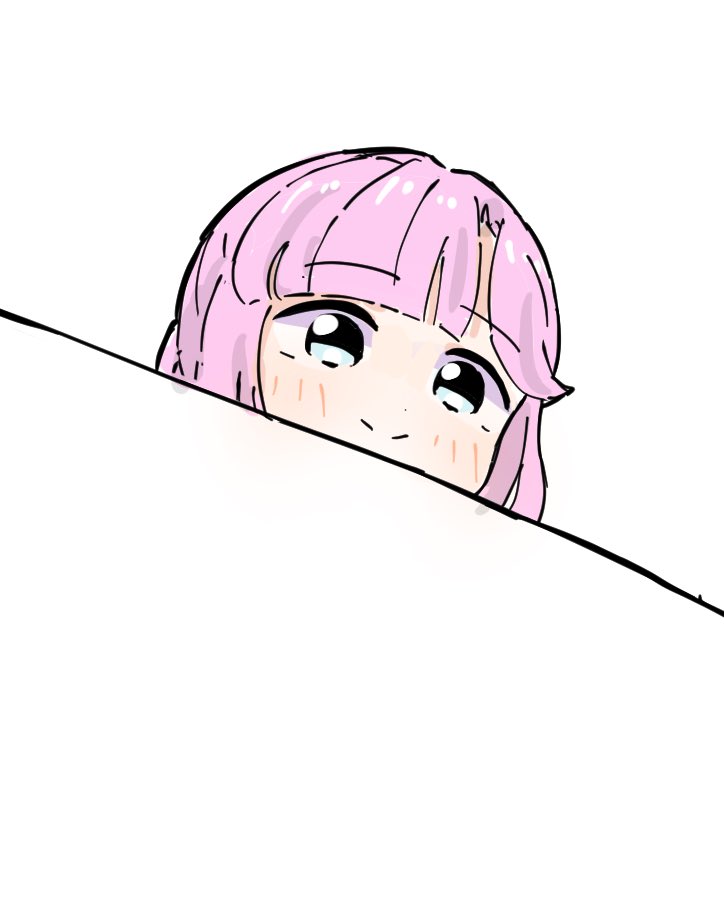 1girlblue eyesblushclosed mouthlooking at viewerpeeking outpink hairsidelockssimple backgroundsmilesolosplit mouthvirtual youtuberwhite background