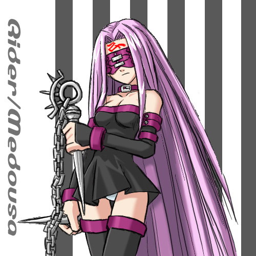00s1girlblindfoldchaincollarcolored blindfolddressfemale focuslong hairnameless dagger (fate)pantiespantyshotsolostraplessstrapless dressthighhighsunderwearvery long hairweaponzettai ryouiki