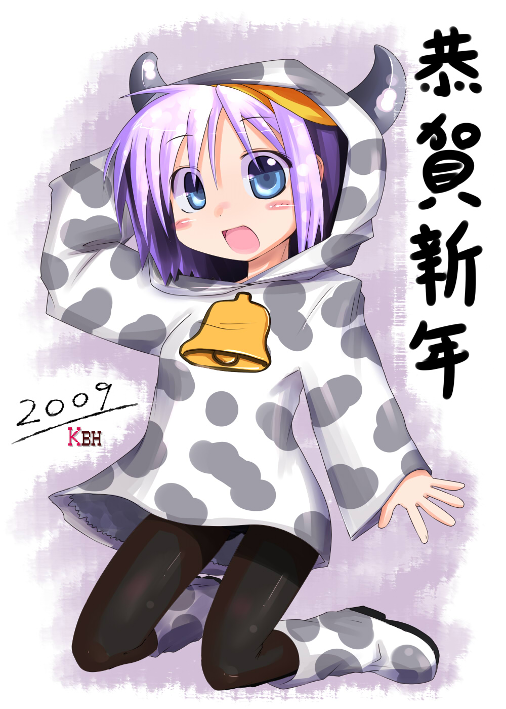 00s1girl2009animal printbellblue eyesbootscow printcowbellfemale focuskneelingnew yearpantyhosepurple hairsolo