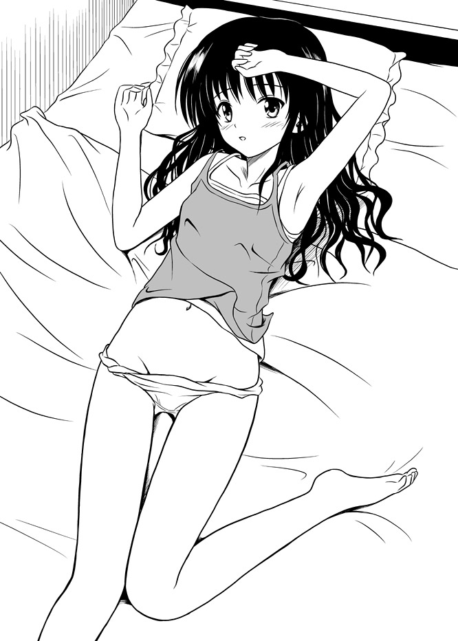 00s1girlarmpitsbarefootbedblushfemale focusgreyscalehair ornamentlong hairlyingmidriffmonochromenavelon backpantiespanty pullpillowsolotank topunderwear
