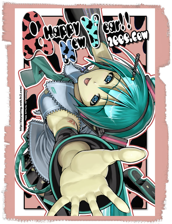 :d00s1girl2009aqua hairaqua necktiearm updetached sleevesfemale focusfrom abovelong sleeveslooking at viewerlooking upnecktienew yearopen mouthoutstretched armpalmspovsmilesolotattoo