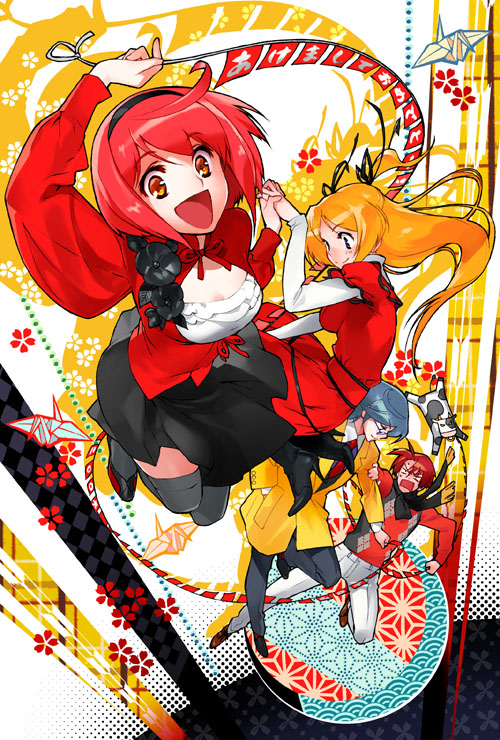 nishigori atsushi, simon (ttgl), yoko littner, tengen toppa gurren lagann, highres, scan, 00s, 1boy, 1girl, asymmetrical gloves, belt, elbow gloves, gloves, short shorts, shorts, studded belt, uneven gloves