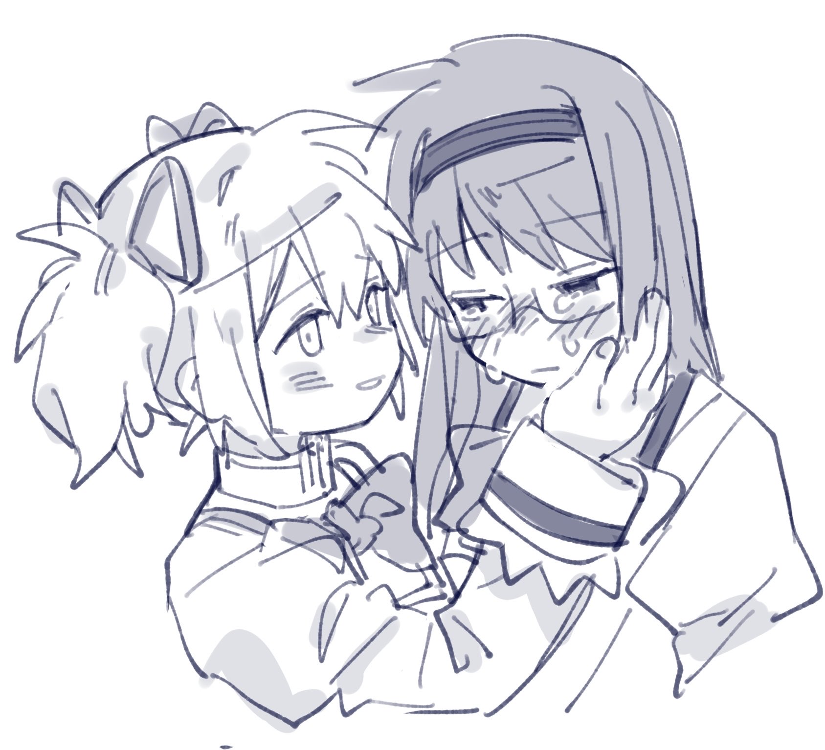 akehoshi subaru, hidaka hokuto, ensemble stars!, commentary, highres, korean commentary, 2boys, ahoge, bbahot, black hair, black pants, blue eyes, bow, closed mouth, crossdressing, crossdressing (mtf), hair between eyes, half updo, hood, hood down, hug, jacket, kiss, kissing cheek, kneeling, long hair, long sleeves, looking at another, male focus, multiple boys, open clothes, open jacket, orange hair, orange jacket, pants, red shoes, shoes, short hair, simple background, sitting, smile, wariza, white background, white bow