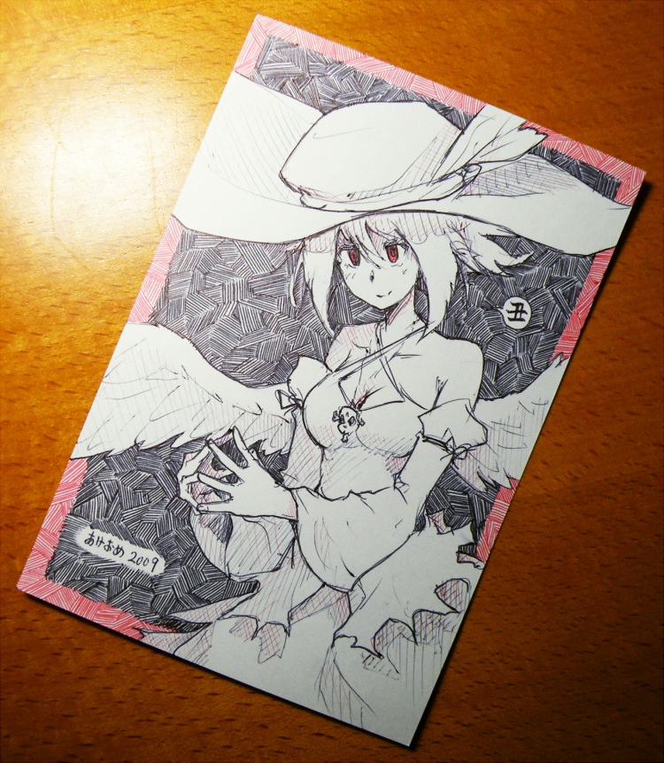 00s1girl2009akeomecardcard (medium)female focushappy new yearhatmonochromenew yearred eyessolospot colorsteepled fingers