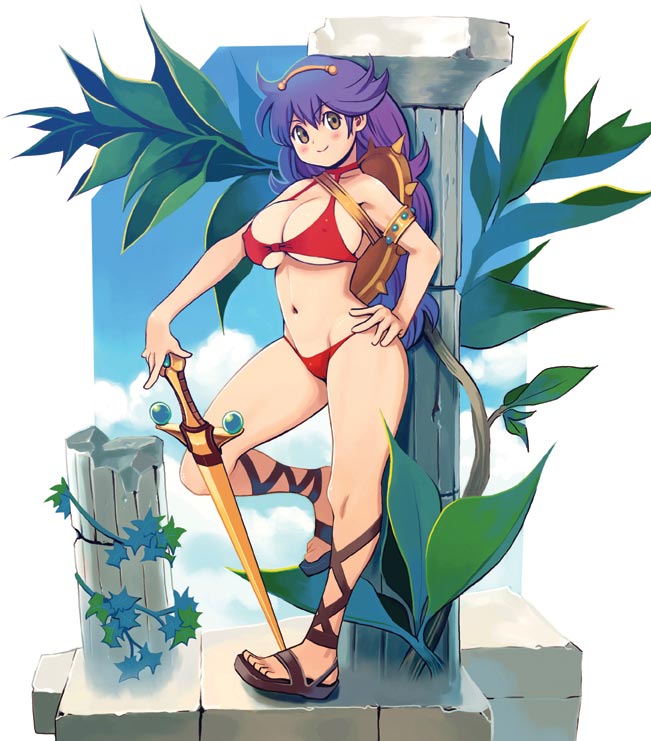 kusanagi kaoru, air groove (umamusume), umamusume, 1girl, animal ears, blue eyes, blue skirt, breasts, brown hair, cleavage, eyeliner, horse ears, horse girl, horse tail, makeup, red eyeliner, simple background, skirt, solo, tail, white background