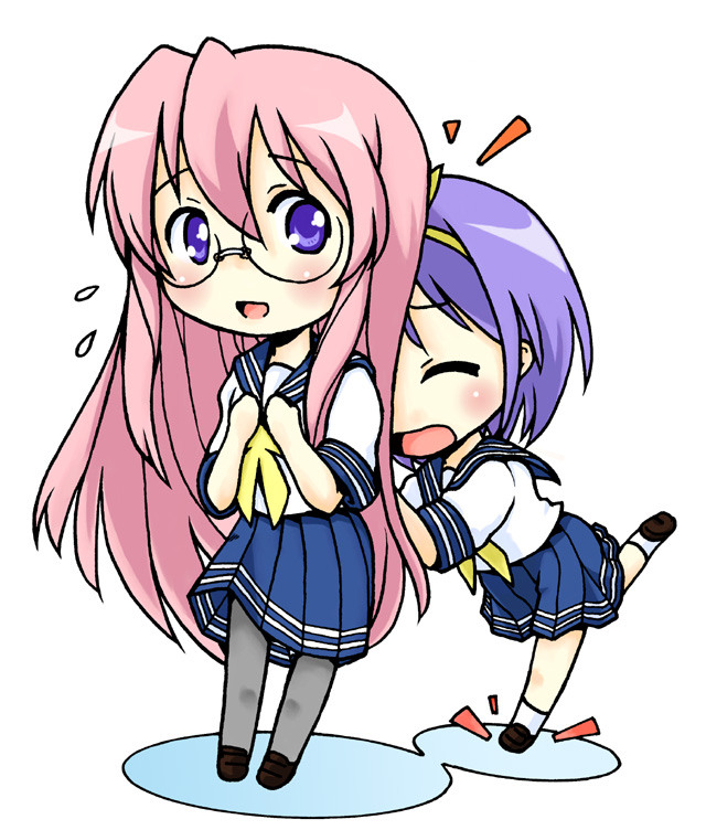 00schibiclosed eyesglasseshidinglong hairpantyhosepink hairpurple eyesschool uniformserafukushort hairshy