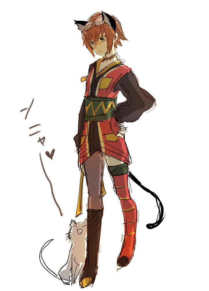 00s1girlanimal earsasymmetrical legwearbob cutbrown haircatcat earscat tailfemale focusfingerless glovesfull bodyglovesgogglesgoggles on headgreen eyeshand on own hipheartmismatched legwearpantyhosered glovesshort hairsimple backgroundsingle leg pantyhosesolostandingtailthighhighswhite background