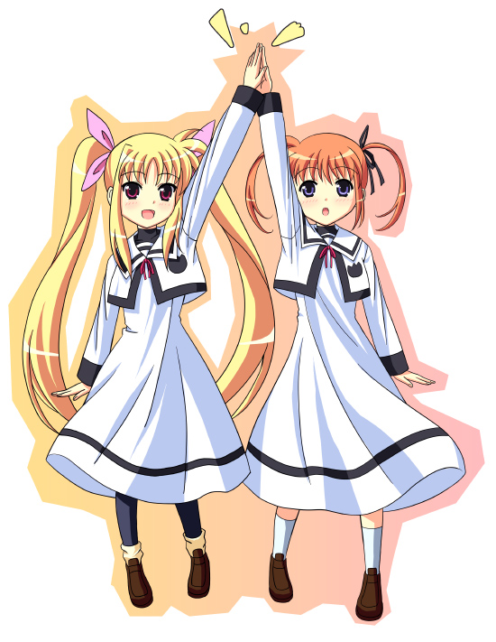 00sblonde hairblue eyesbrown hairhigh fivelong hairpantyhosered eyesschool uniformshort hairsockstwintails