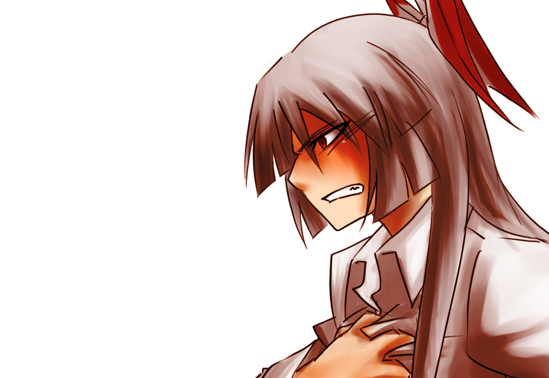 sakura yuu, vivio, lyrical nanoha, mahou shoujo lyrical nanoha, mahou shoujo lyrical nanoha strikers, lowres, 00s, 1girl, aged up, breast press, breasts, female focus, heterochromia, large breasts, long hair, solo, very long hair