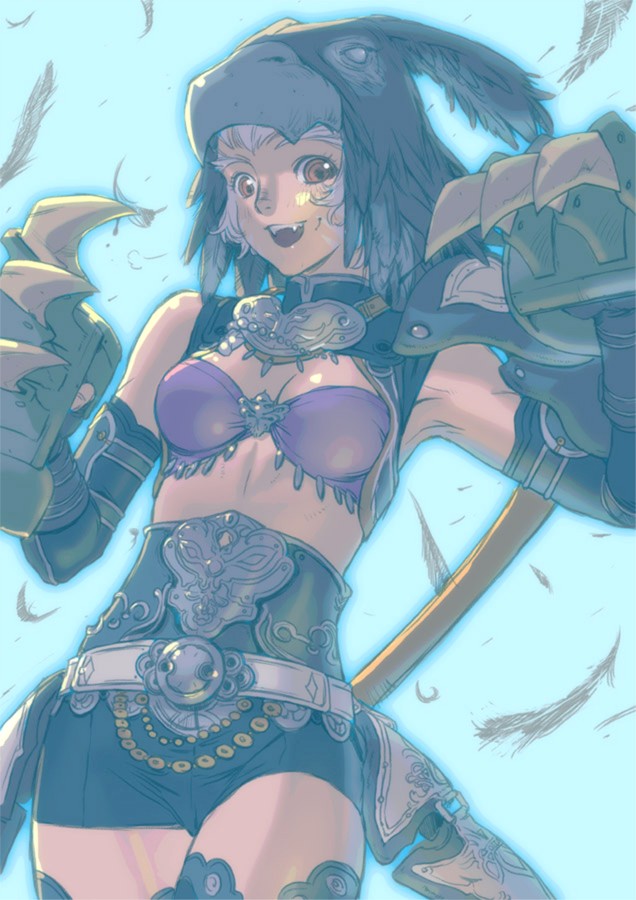 hamamo, fantasy earth zero, bad id, bad pixiv id, blue eyes, chain, crystal, ice, polearm, short hair, weapon, white hair